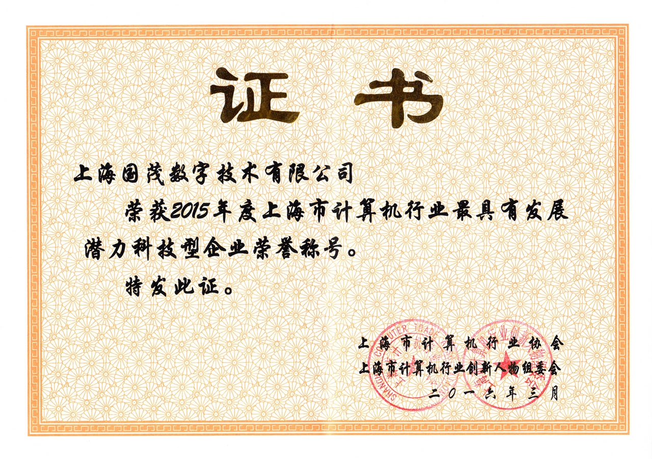 2016年3月25日,上海市計算機行業協會在中科院上海分院舉行了“2015年度上海市計算機行業最具發展潛力科技型企業暨創新人物”頒獎儀式。