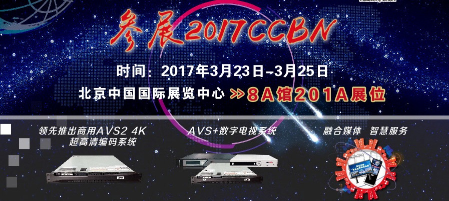 2017年3月23-25日 ,亞太地區(qū)規(guī)模最大的廣播影視展覽會(huì)中國(guó)國(guó)際廣播電視信息網(wǎng)絡(luò)展覽會(huì)(CCBN2017)將在北京中國(guó)國(guó)際展覽中心盛大開(kāi)幕,上海國(guó)茂將在展會(huì)上重磅發(fā)布自主研發(fā)的AVS2 4K超高清編碼系統(tǒng)。